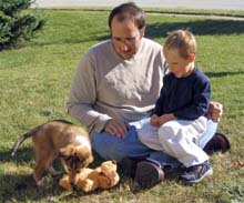 Beispiel 2: Auch in diesem Fall muss mit dem Hund gearbeitet werden. Der Hund „unterstützt" aus seiner Sicht die Mutter. Das Kind hört nicht, die Mutter reagiert nicht sofort – also unterstützt der Hund die Mutter und „übernimmt" Erziehungsaufgaben … ähnlich dem Verhalten von Border Collies oder Australian Shepherds beim Schafe Hüten. Hierbei kann der Hund anderweitig beschäftigt werden, z.B. Hüten eines Stofftieres ohne Verteidigung gegen andere Familienmitglieder. Alternativ kann der Hund auch über Kopfarbeit ausgelastet und beschäftigt werden. Tolle Anregungen zur Kopfarbeit gibt es im Internet oder im Buchhandel (siehe auch Spiele-Serie in WUFF 2 bis 12/2004 von Christina Sondermann).