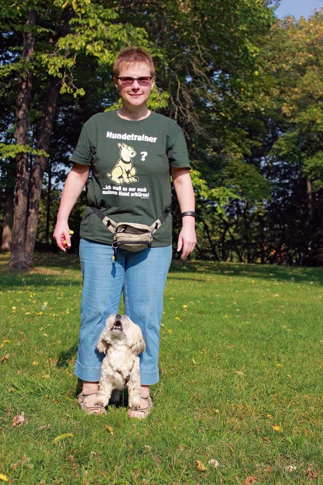 Robby, auch „Rob Astaire“ genannt, der Havaneser von Frau Christine Keller, ist nicht nur einfach ein gut erzogener Kleinhund, sondern auch ein ­richtiger Traumtänzer: „Robby ist im Alter von 9 Wochen von einer anerkannten Havaneser-Züchterin bei mir eingezogen. Mir war sehr wichtig, eine gute Züchterin zu finden, und ich habe mich schon im Vorfeld über diese Rasse und ihre Bedürfnisse gut informiert. Von Anfang an habe ich mit Robby an der Grunderziehung gearbeitet. Im Alter von 5 Monaten habe ich mit ihm die ersten Seminare zum Thema sinnvolle Beschäftigung und im Weiteren Seminare zu sanfter, positiver Erziehung, Hundeverhalten und Verhaltenskorrektur besucht, was wir auch noch immer tun, man lernt schließlich nie aus. Der Spaß sollte natürlich auch nicht zu kurz kommen, weshalb wir im Hundesport-Hotel Wolf Trick- und Dog Dance-Kurse belegt haben. Wir haben inzwischen an einigen Dog Dance-Turnieren teilgenommen. Von der Aussage „Kleine Hunde braucht man nicht erziehen“ halte ich gar nichts. Robby ist sehr viel mit mir unterwegs und ich habe ihn im Büro dabei. In der Seniorenresidenz, in der mein Vater lebt, begeistert er die Bewohner mit Tricks und genießt die bewundernden Kommentare und Streicheleinheiten. Wenn wir Shoppen gehen, zeigt er auch in Geschäften immer mal kleine Tricks oder DogDance-Übungen und bezahlt dann mit einem Geldschein, den ich ihm gebe. Das macht allen sehr viel Freude. Robby ist inzwischen 9 Jahre alt, er ist überall ein gern gesehener Gast und ich kann ihn überall mit hin nehmen. Wenn ich nicht von Anfang an an seiner Erziehung gearbeitet hätte, wäre so ein harmonisches Leben, wie wir zwei es führen, nicht möglich.