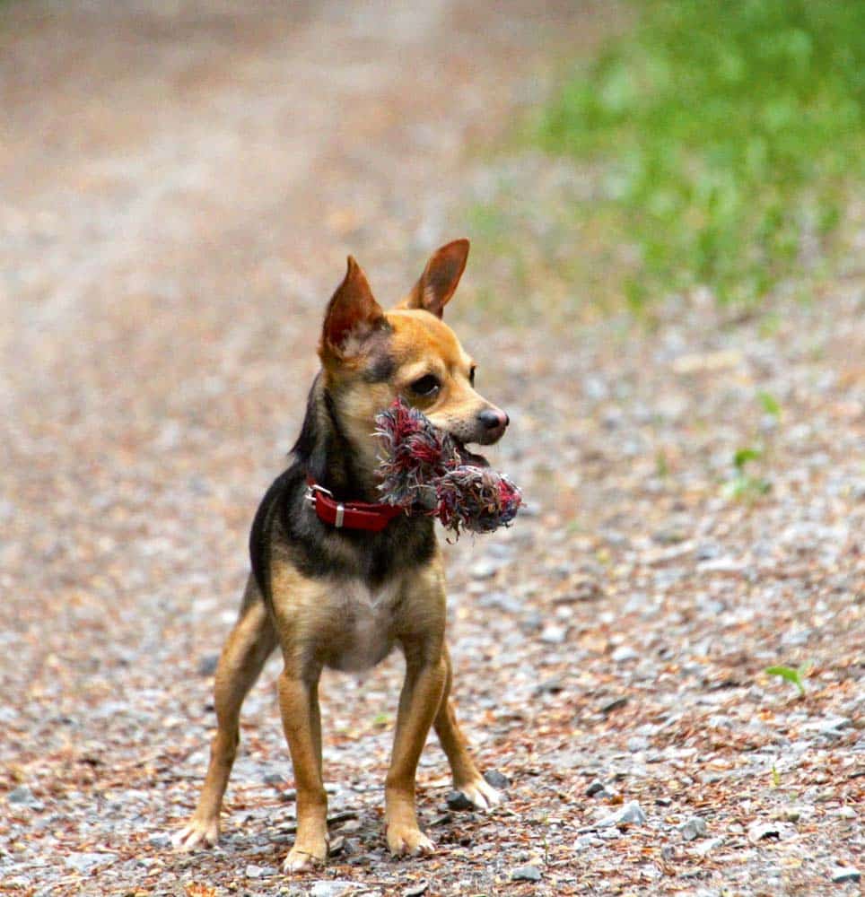 Ingrid Burgardt führt neben ihren Collies gute 2,5 kg schwere Chihuahua-­Manpower: „Romeo ist ein echter Spanier. Er wurde von der Tierschutzor­ganisation „Hunde in Not Rhein-Main“ an uns vermittelt. Inzwischen ist er fast drei Jahre alt und ein knappes Jahr bei uns. Der Anfang verlief etwas ­schleppend, da sich Romeo physisch und psychisch erst einleben musste. Er wurde, bevor er zu uns kam, wohl in einer kleinen Kiste gehalten, was seinem Knochenbau nicht sehr gut bekam. Auch an regelmäßige Ernährung musste er sich erst gewöhnen. Mittlerweile sitzen die Grundkommandos gut, wir werden in Zukunft weiterhin Hundekurse zu unterschiedlichen Themen besuchen. Romeo apportiert sehr gerne, liebt Nasenarbeit und ein paar Dog Dance-Schritte kann er auch schon. Die Einstellung „kleine Hunde braucht man nicht erziehen“ halte ich nicht nur für falsch, sondern auch für gefährlich. Gerade kleine Hunde können „unerzogen“ schnell in Gefahr geraten, da sie nicht abschätzen können, wie groß bzw. klein sie sind. Ich besitze noch zwei Collies, und da die drei immer dabei sind, müssen sie sich einfach gut benehmen, auch der Mini. Kleine Hunde arbeiten genau so gerne wie große, und gut gefördert und trainiert sind die Zwergerl oft sogar ausdauernder als so mancher Riese“.