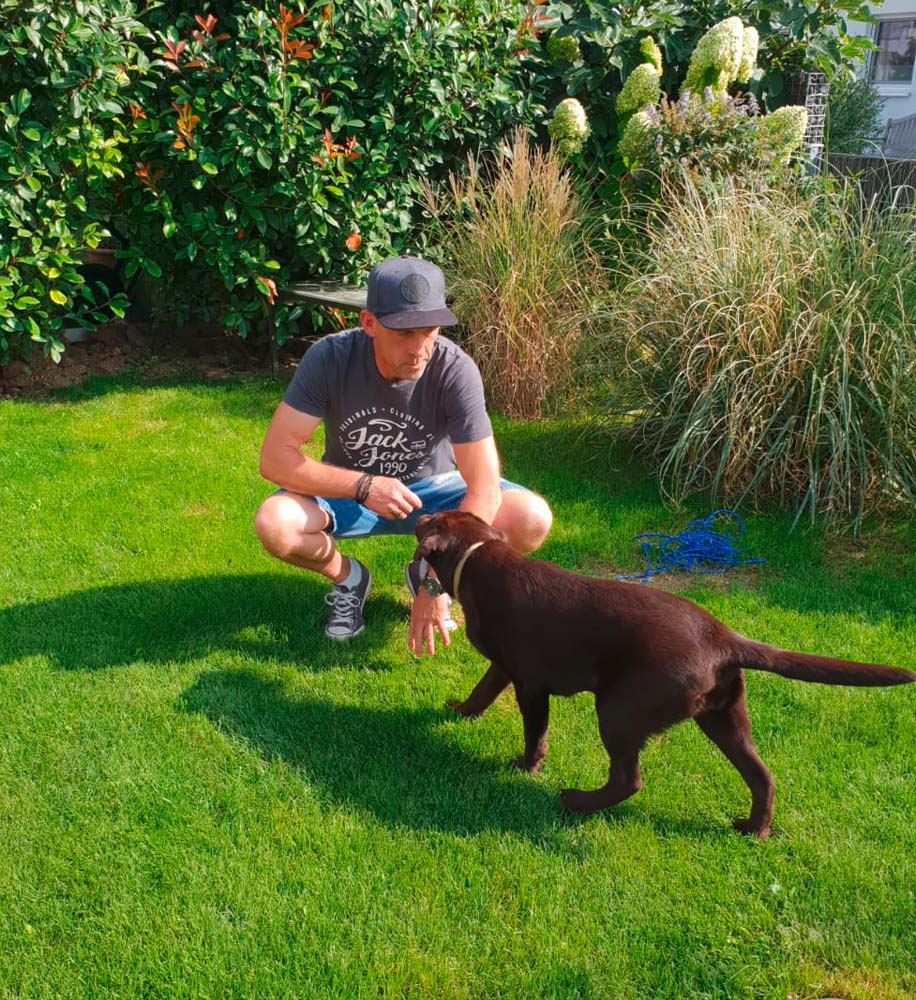 Schritt 3: Sie verlagern das Training in den Garten. Voraussetzung ist natürlich, dass es im Haus ausnahmslos funktioniert. Auch das wird solange trainiert, bis es so gefestigt ist, dass Ihr Hund schon überhaupt nicht mehr darüber nachdenken muss, was er jetzt zu tun hat.