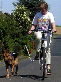 Hunde haben in der Regel ein hohes Laufbedürfnis und lieben abwechslungsreiche Beschäftigung. Es bietet sich daher auch für blinde Hunde an, sie am Rad laufen zu lassen. Die Gewöhnung an dieses Fortbewegungsmittel konnte bei Gilbert schnell erreicht werden. Zum anfänglich nur geschobenen Rad konnte eine positive Verknüpfung über Leckerchen hergestellt werden. Am Rad selbst wird über zwei Leinen sichergestellt, dass Gilbert nicht aus der Spur brechen und sich am Rad verletzen kann.