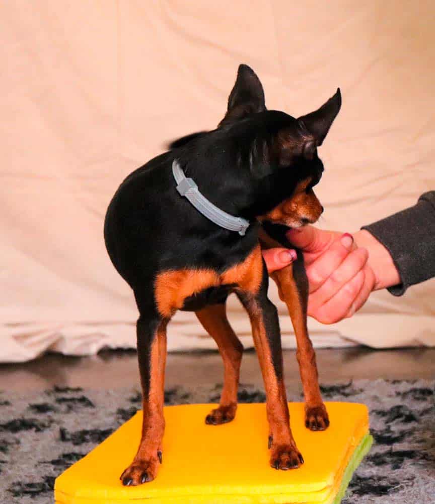Für Tierärzte sind einige Punkte und Übungen besonders wichtig, da sie eigentlich für jede gründliche Untersuchung notwendig sind: überall anfassen lassen von einer fremden Person, mit Gegenständen berühren usw. Dafür gibt es viele verschiedene Trainingsmöglichkeiten und sogenannte Targets, die man für bestimmte Übungen aufbauen kann. Ein Target – was ist das überhaupt? Zusammengefasst bedeutet die Verwendung eines Targets (im Zusammenhang mit Medical Training), dass der Hund lernen soll, mit einem seiner Körperteile einen Gegenstand oder einen Körperteil des Menschen zu berühren. Damit kann man schon sehr viele Verhaltensweisen trainieren. Im weiteren Sinne ist Target-Training noch vieles mehr. Der Hund lernt, auf einem Gegenstand zu verharren und erhält dafür eine Belohnung.