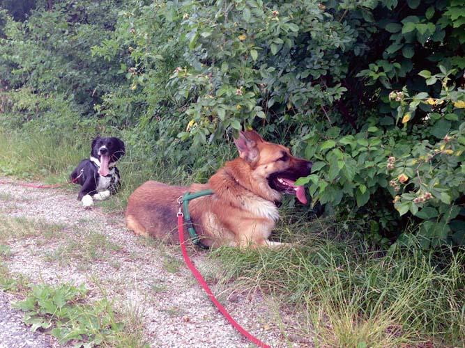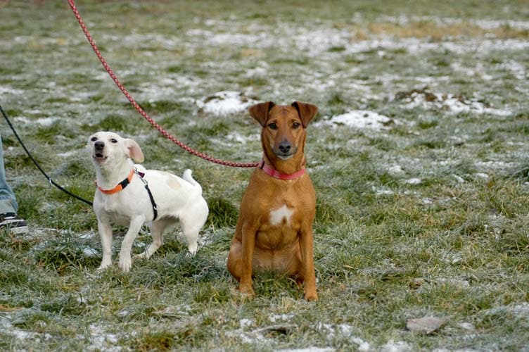 Vielleicht ist ein gemeinsamer ­Spaziergang in sicherem Abstand für die betreffenden Hunde eine bessere Möglichkeit, sich anzufreunden. ­Bitten Sie, dass ein(e) Betreuer(in) den Tierheim-Hund führt, zu dem dieser eine gute Bindung hat. Eine Auszeit im Grünen und die Distanz zum Tierheim entspannen und lassen den Fokus der Hunde auf andere Reize als den vierbeinigen Begleiter lenken. Wechseln Sie in sicherem Bogen die Reihenfolge, sodass jeder einmal in der Spur des anderen schnüffeln kann. Das schafft Sicherheit und Vertrauen. Gemeinsam kleine Aufgaben meistern, etwa mit einfachen Suchspielen, macht gute Stimmung und den Spaziergang mit dem Neuen zu einem angenehmen Erlebnis.
