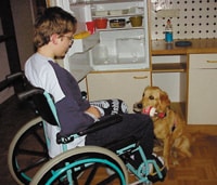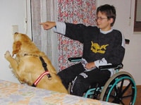 Lesen Sie den Bericht des 15-jährigen Johannes Neudorfer aus Linz, der beim Verein „Rehabilitation Dogs of Austria" mitarbeitet. Er hat es in idealer Weise geschafft, „seine" erste Hündin „Blume" an ihr kleines Frauchen Anna zu übergeben, und betreut bereits seinen zweiten „geliehenen" Hund „Winnie". Allerdings kann man Johannes schon als „Profi" bezeichnen, denn er hilft sogar beim Training mit, indem er sich auch selber in den Rollstuhl setzt und seinen Schützling mit großer Geduld lehrt, z. B. den Lichtschalter zu betätigen, Getränke aus dem Kühlschrank zu holen oder gewünschte Gegenstände herbei zu bringen. Auch die Gewöhnung des jungen Hundes an den Verkehr gehört zu seinen Aufgaben.