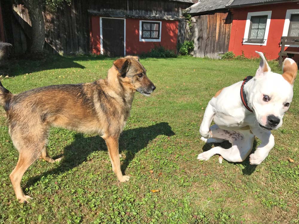 »Sogar den Postboten liebt sie. Wenn er kommt und sie liegt im Garten, dann legt sie sich auf den Rücken damit er sie am Bäuchlein krault. Ich habe ihr die Angst mit viel Geduld vor fast allem genommen. Ich kann sie mit dem Handstaubsauger absaugen, sie geht bei jedem lauten Lastwagen ruhig vorbei und vertraut mir vollkommen. Nur Düsenjäger mag sie nicht, ich weiß nicht warum. Aber auch das haben wir in den Griff bekommen, indem ich immer auf den Himmel gezeigt und gelacht habe. Es war mir völlig egal, wenn ich mich dadurch auch ein bisserl zum Deppen gemacht habe. Aber es hat geholfen und das zählt ja am Ende«, erzählt Minis Frauchen lachend.