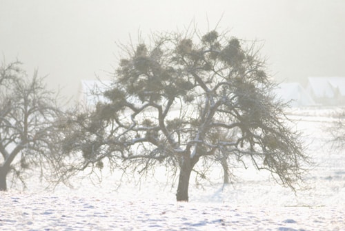 Die Mistel ist schon seit Jahrtausenden ein wichtiger Bestandteil unserer kulturellen Welt. Besonders im Winter, wenn die Laubbäume ihre Blätter verlieren, sind die „Kugeln" im Baum schon von weitem gut sichtbar. Zu Weihnachten holt man die Mistel gerne als Dekoration ins Haus oder auch wegen des alten Brauchs, sich unter ihr zu küssen.