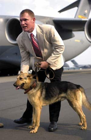 „Wenn wir auf unseren Patrouillen mit einem Hund unterwegs sind, auf dessen feine Sinne wir uns verlassen können, dann erhöht dies die Wirksamkeit unseres Einsatzes und kann darüber hinaus auch unser Leben retten,“ sagte Joyce. „Fluffy war öfters im Fadenkreuz strahlengelenkter Raketen und wurde häufiger beschossen als jeder andere meiner Truppe. Der Hund erwies sich als wertvolles Mitglied meines Teams. Und er bedeutet mir sehr viel, da wir gemeinsam sehr viel mitgemacht haben“.
