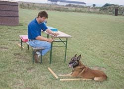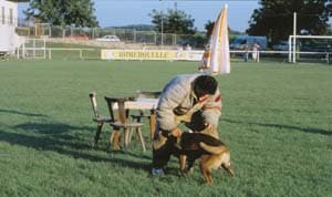 Der Hundeführer darf nach dieser Anmeldung den Prüfungsplatz nicht mehr verlassen, sondern muß warten, bis er vom Ringhelfer zur Arbeit aufgefordert wird.