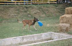 Der Gegenstand muss auf mindestens 5 m Distanz vom Hund geworfen werden. Die Übung muss innerhalb 15 Sekunden ausgeführt werden. Ein einziges Kommando zum Apportieren ist erlaubt. Der Gegenstand selbst wird vor der Prüfung aus einer bestehenden Liste ausgelost (Hantel, Kegel, Sandsack, Plastikflasche, kleine Tasche, Reifen eines Kinderwagens, etc.). Der Hund muß den höchstens 1 kg schweren Gegenstand gut aufnehmen können.