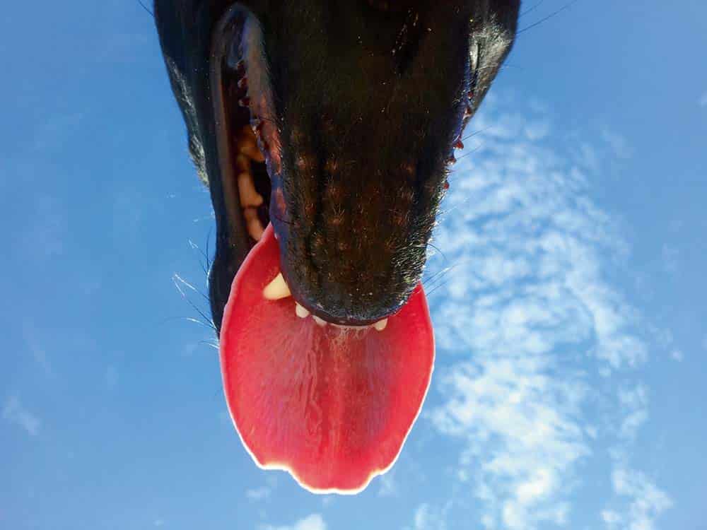 In der Regel sind Hundezungen viel kürzer. Genaue Maße gibt es allerdings nicht, denn die Länge ist individuell und hängt überdies von der Rasse ab. Ein Muskelprotz ist sie auf alle Fälle immer. Unmengen von Muskeln befinden sich in der Zunge, welche diese zu einer regelrechten Akrobatin machen. Außerdem sitzt an der Zungenspitze die knapp vier Zentimeter lange sogenannte Lyssa, eine Art Schlauch. Dank dieser kann der Hund seine Zungenspitze fast unabhängig vom Rest der Zunge atemberaubend verformen: Rohr, Spatel, Kelle – alles kein Problem!