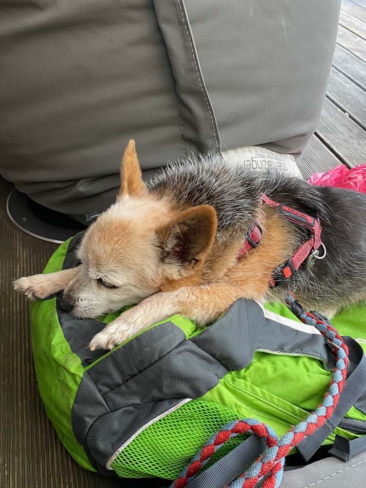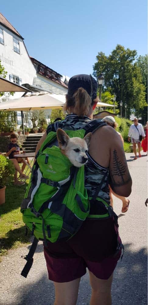 Gismo ist nicht nur durch sein Äußeres ein ganz besonderer Hund, sondern auch durch sein Verhalten, weshalb er von Janett gerne als Hutze bezeichnet wird: »Halb Hund – halb Katze. Teilweise hat er Verhaltensweisen, die eher denen einer Katze gleichen, wie zum Beispiel ewiges Pfötchenlecken.« Sein katzenähnliches Verhalten und seine Größe sind jetzt im Alter auch ein echter Vorteil: »Unsere Spaziergänge sind mittlerweile sehr gemütlich und langsam. Wenn er gar nicht mehr gehen mag, dann kann ich ihn im Rucksack mitnehmen – er ist sozusagen rucksacktauglich. Zufrieden sitzt er dann in seinem Rucksack und schaut von oben auf die Welt herunter«, verrät Janett B.