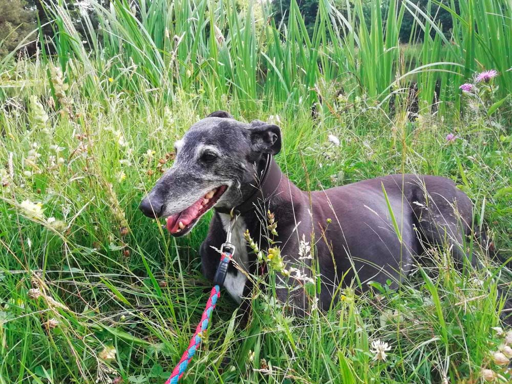 Vor zwei Jahren musste Christine W. unerwartet von ihrem Pippo Abschied nehmen: »Er fiel plötzlich spätabends im Garten tot um. Seither ist es viel ruhiger geworden.« Aufgrund ihrer alten Verletzungen bekam Negra bereits in den mittleren Lebensjahren Traumeel. Seit diese nicht mehr ausreichen erhält sie Schmerzmittel und seit einiger Zeit Herzmedikamente sowie ein Medikament für die Schilddrüse. »Mit den Medikamenten geht es ihr auch heute noch gut, manchmal darf sie auf einer übersichtlichen Wiese noch freilaufen und rennen. Sie ist unverändert sehr schnell, kann aber aufgrund ihrer Behinderung nicht bremsen und schlecht lenken. Da sie nicht schwimmen kann, geht sie nur so weit ins Wasser, wie sie stehen kann. Sie springt auch nur aufs Sofa, ins Auto wird sie ja von Anfang an gehoben, darauf wartet sie auch«, beschreibt Christine W. den aktuellen Gesundheitszustand von Negra. »Katzen haben es ihr aber immer noch angetan. Wenn sie eine sieht, kommt es immer noch zu Übersprungshandlungen, sie beißt dann sehr energisch in die Leine.«
