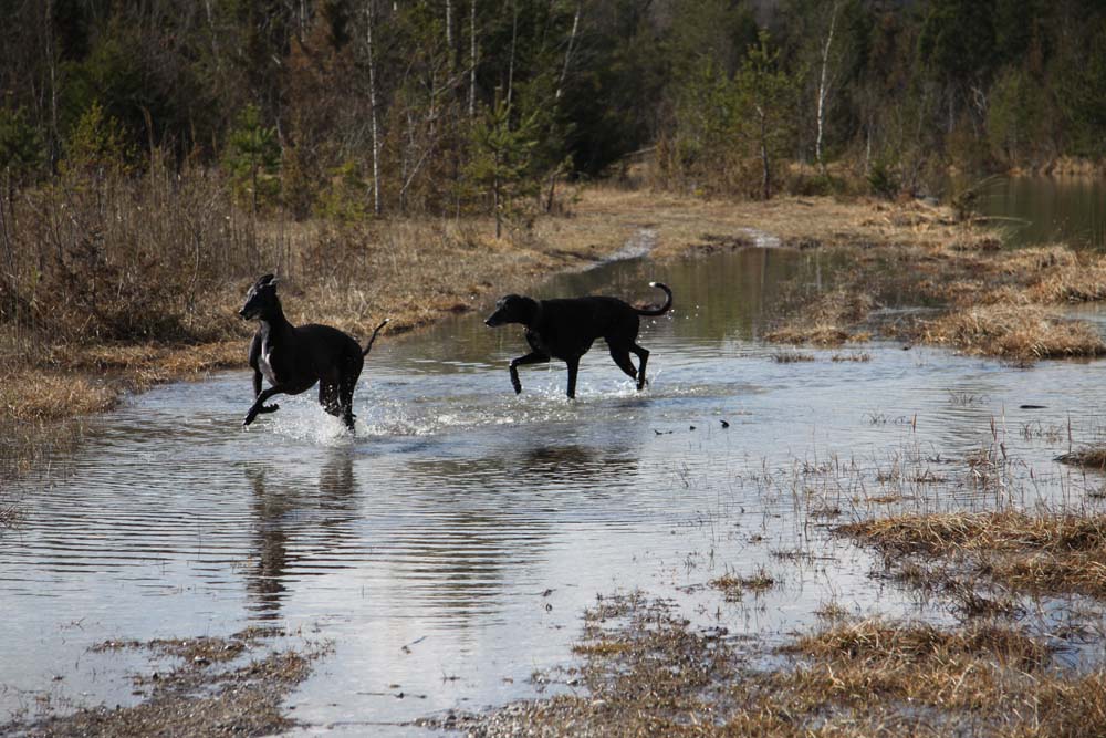 Negra ist jetzt bereits seit neun Jahren bei Christine W. und war von Anfang an eine sehr souveräne und gut erzogene Hündin. »Sie geht einwandfrei an der Leine und reagiert (fast immer) auf den Rückruf. An ihrem einzigen Problem – sie jagte auf Sicht, wenn sie etwas nicht mehr sehen konnte, kam sie aber gleich zurück – haben wir unsere gesamte gemeinsame Zeit lang gearbeitet. Durch den sehr ausgeprägten Jagdinstinkt der Hunde, den Aufruf zur Jagd gab immer die Dritte im Bunde, ein Vollblut-Terrier-Mädchen, sind Spaziergänge viele Jahre lang oft sehr aufregend gewesen«, erinnert sich die Halterin an die erste Zeit mit Negra.