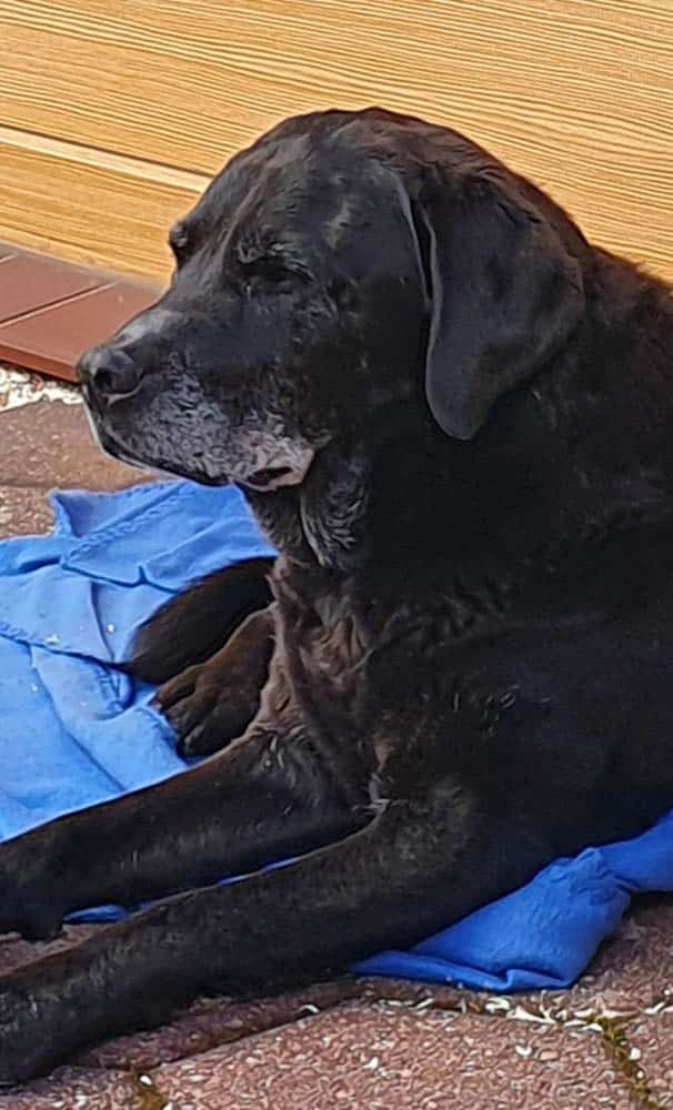 Polly, ein Labradormix, kam Ende September 2018 als Pflegefall zu Elisabeth P. Polly war damals vermutlich 10 Jahre oder sogar älter, und kam aus einem Tierheim in Norddeutschland zu Elisabeth P.: »Polly wurde bei ihrem toten Herrchen gefunden und im August 2018 im Tierheim aufgenommen. Sie war stark abgemagert, fast verhungert und hatte viele Tumoren – besonders Mammatumore. Außerdem war sie eine orthopädische Großbaustelle. Ihre Perspektive war unklar. Wir haben sie im Tierheim entdeckt und beim ersten Besuch bei ihr in der Box – wir schauten uns an – sprang der Funke über. Sie brachte uns auch direkt in feinster Labrador-Manier ein Stofftier. Nach dem Kennenlernen und Besuchen wurde ein Umzugstermin ins Auge gefasst. Das Tierheim fragte dann jedoch kurzfristig bei uns an, ob wir wegen unvorhergesehener Notfälle und Platzmangel Polly auch eher aufnehmen würden, und so zog sie von einem Tag auf den anderen bei uns ein. Daher auch ihr Name Polly, nach dem Film »Und dann kam Polly« mit Jennifer Aniston. Sie hat ihren Platz bei uns ganz selbstverständlich eingenommen. Sie stieg ins Auto, legte sich zu Hause auf einen ihrer Plätze und blieb – und begleitete uns von da an in aller Ruhe.«