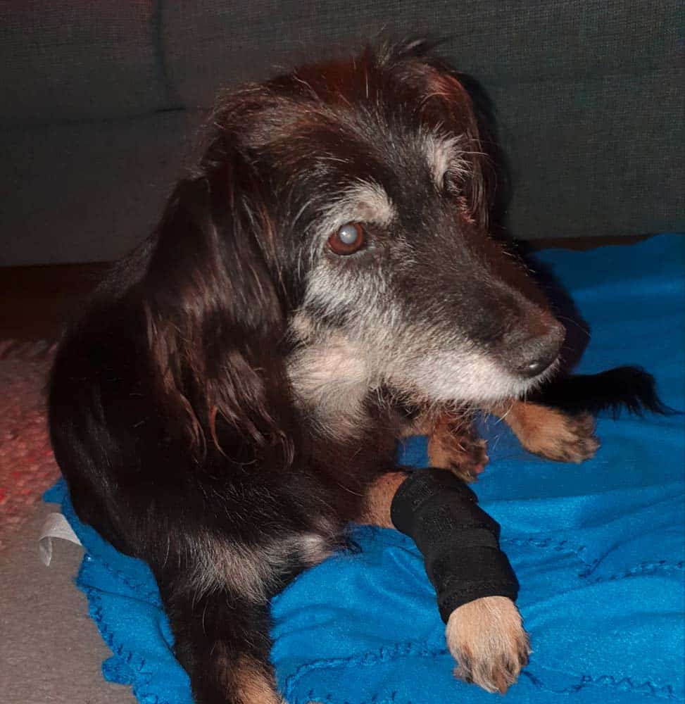 Auf ihrem neuen Platz erholte sich Polly so gut, dass die operative Entfernung der Tumore in Angriff genommen werden konnte. »Nach der Operation ging es rasant aufwärts. Sie zeigt uns alles, was sie so konnte, und mit viel Freude lernte sie auch aufgeregt gern neues«, erzählt die Halterin von der Zeit mit Polly. Da Elisabeth P. immer wieder ältere Hund aufnimmt, hat sie eine Ausbildung zur Tierheilpraktikerin absolviert, um die Oldies auch naturheilkundlich unterstützen zu können: »Polly hat mich während dieser Ausbildung geduldig begleitet. Ich durfte an ihr Untersuchungen üben – z.B. Herz, Lunge, Bauch abhören, Puls fühlen usw. – und sie auch »behandeln« z.B. tapen, akupunktieren. Bei der Prüfung zur Zertifizierung und bei der praktischen Prüfung war sie ebenfalls dabei.«