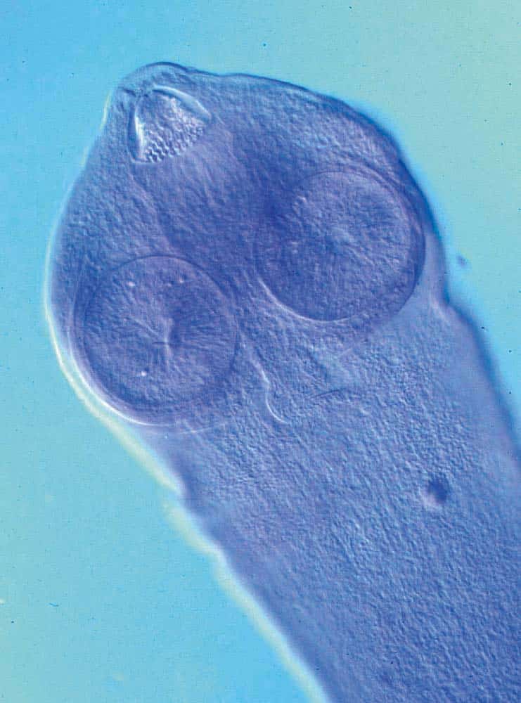 Die Bandwürmer gehören zu den bekanntesten Parasiten des Darmes. Sie sind stets Zwitterwesen, und ihnen allen fehlt ein eigenes Verdauungssystem. Kein Wunder, wozu sollten sie einen eigenen Darm brauchen, wenn sie in den Därmen von Wirbeltieren leben. Ihre Nahrung ist der sie umgebende gelöste und angedaute Nahrungsbrei ihres Wirtstieres, den sie über ihre gesamte Körperoberfläche aufnehmen.