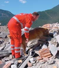 Die Ausbildung eines Suchhundes beginnt bereits ab dem vierten Lebensmonat des Tieres und dauert rund drei Jahre. Die Suchhunde werden dabei für Flächen-, Fährten-, Trümmer- und Lawinensuche geschult. Darüber hinaus muß sich das einzelne Tier einer eingehenden Prüfung seiner Wesenstärken unterziehen.