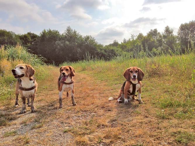 „Wenn es Geschichten aus dem Alltag noch und nöcher gibt, wenn man so verrückt ist, sein Zuhause gleich mit zwei Beagles zu teilen" (Zitat: Sophie Strodtbeck) – dann kann ich mit Anekdoten im 4-stelligen Bereich aufwarten. Doch Rückschlüsse auf meinen Geisteszustand verbitte ich mir dann tunlichst! Denn zu meinem Rudel gehören drei Beagles: Sam, fast 11, aus einer Jagdzucht, Scarlett, 7, ein Tierversuchshund, und last but not least Murphy, 4, ebenfalls Pensionär aus der Forschung.
