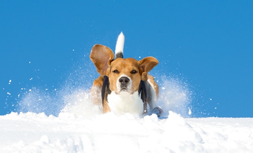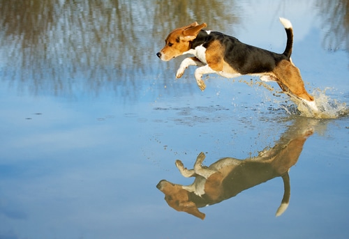 Und weil ich als Beagle der Meinung bin, dass viel viel hilft, und bereit bin, für mein Frauchen alles zu tun, habe ich gleich für noch bleibenderen Eindruck gesorgt. Ich will ja schließlich nur ihr Bestes! Klar scheue ich dafür keine Mühen, und so habe ich mich deswegen nachmittags beim Spazierengehen in eiskalte Fluten gestürzt, was abends einen Hammelschwanz – auch als Wasserrute bekannt – zur Folge hatte. Konkret, das ist eine schlaffe Lähmung der Schwanzwurzel, und besonders Beagles und Labradore sind anfällig dafür. Man geht davon aus, dass es nach einem Bad in kaltem Wasser oder bei intensiver jagdlicher Betätigung auf einer Fährte mit entsprechendem Ruten-Wedel-Dauereinsatz zu einer Minderdurchblutung der Schwanzwurzel und in Folge dessen zu einer (meist vorübergehenden) schlaffen Lähmung kommt. Ein Prachtbeagle wie ich, der normalerweise seine Rute stolz bis fast zur Nase nach vorne gebogen trägt, fällt natürlich sofort unangenehm auf, wenn das auf einmal nicht mehr so ist und alles nur noch traurig hängt. Ich bot ein Bild des Elends! Lacht nur, wer den Schaden hat, braucht ja für den Spott bekanntlich nicht mehr zu sorgen. Jedenfalls war an dem Abend auch noch eine damalige Arbeitskollegin meines Frauchens zu Besuch, der meine missliche Lage auch nicht entging.