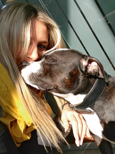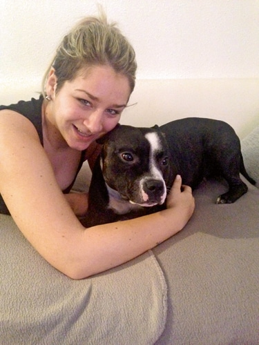 Gemeint sind nicht ihre treuen Fans, sondern ihre beiden vierbeinigen Lieblinge: das ist zum einen Valentino, der einjährige Chihuahua-Prinz, und Cicilia, die fast dreijährige Staffordshire Bull Terrier-Dame. „Ja, das stimmt, Volker – schüchtern waren die beiden nie,“ lacht Stephanie, „ im Gegenteil, sie sind zwei richtige Temperamentsbündel und waren vom ersten Tag an ein Herz und eine Seele. Valentino und Cicilia zeigen uns täglich unmissverständlich ihre Freude am Leben. Sie genießen jeden Tag in vollen Zügen, rennen wie zwei Wahnsinnige über die Wiesen und toben miteinander, bis jedem von ihnen die Zunge aus dem Hals hängt. Manchmal schlagen sie sogar vor lauter Lebensfreude Purzelbäume,“ erzählt die singende Hundeliebhaberin und gesteht etwas nachdenklich: „Ich liebe meine beiden Rowdies. Was mir allerdings sehr weh tut ist, dass ich leider beim gemeinsamen Spaziergang immer öfter von ahnungslosen Menschen wegen meiner Staffie-Lady verängstigte, manchmal fast schon böse Blicke ernte. Aber gerade sie ist ein absoluter Traumhund: sie geht freundlich auf alle Menschen zu, fährt wahnsinnig gerne im Auto mit und fühlt sich auch in der vollen Straßenbahn wohl. Sie ist weder nervös noch ängstlich oder schreckhaft – Cicilia ist ein wirklich wahrer Fels in der Brandung! Ich glaube, dass alle Menschen, die Vorurteile gegenüber den Staffies haben, noch immer nicht kapiert haben, dass das Problem definitiv nicht beim Hund, sondern am anderen Ende der Leine liegt. Und das ist meiner Meinung nach hunderassenunabhängig. Außerdem ist Cicilia eine extreme Kampfschmuserin – im Gegensatz zu meinem kleinen Prinzen.