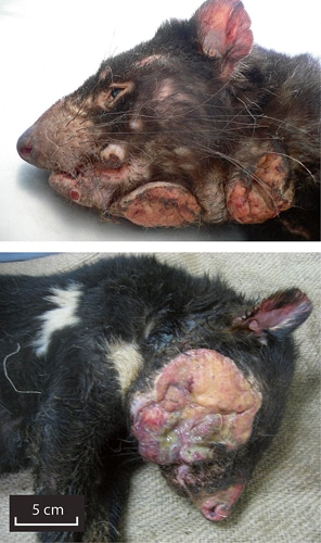 Während sich aber die Krebszellen des hundlichen Sticker-Sarkoms vor 2.500 Jahren entwickelt haben – andere Forscher sprechen sogar von vor 6.000 Jahren (Belov 2012) – lässt sich die genetische Linie des Tumors des Beutelteufels nicht früher als in das Jahr 1996 datieren. Das Problem beim Beutelteufel ist der Umstand, dass die Population äußerst klein und geografisch sehr beschränkt ist, was daher zu einer geringen genetischen Vielfalt führt. Dies wiederum bedeutet auch eine geringere Immunabwehr, sodass der Beutelteufel nicht dieselben immunologischen Möglichkeiten wie die Streunerhunde hat, den Tumor durch körpereigene Mechanismen zu bekämpfen. Aus diesem Grund stellt die Gesichtstumor-Erkrankung des Beutelteufels die Gefahr seiner Ausrottung dar.