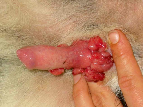 Tumor beim Rüden häufig im Penisbereich, bei der Hündin in der Scheide: