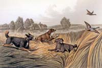 Sowohl Henri Bernard Chalon als auch Richard Ramsay Reinagle hinterließen uns schöne Gemälde des English Water Spaniels. Ich glaube, wir können davon ausgehen, dass besonders Reinagle eine wahre Darstellung des English Water Spaniels geschaffen hat, weil sein Gemälde zu den Beschreibungen passt. Reinagles Water Spaniel hat keine Ähnlichkeit mit einem Collie. Der Stich von Henry Thomas Alken Sr. zeigt einen anderen Typ des Water Spaniels. Aber sie haben lockiges Fell, und Alken hat diese Spaniels bei ihrer wichtigsten Arbeit dargestellt: der Jagd auf Enten.