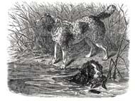 In den 1850ern schrieb „Stonehenge" (J.R. Walsh) in seinem Buch „Manual of British Rural Sports" allgemein über Spaniels. Seine Definition eines Spaniels war recht simpel: „Hunde, die das Wild aufstöbern und das Töten ihrem Herrn überlassen." Wie auch viele andere Autoren vor und nach ihm unterteilte Walsh die Spaniels in Land und Water Spaniels. Seiner Meinung nach konnte man die Water Spaniels in zwei Gruppen unterteilen: den Irish Water Spaniel und den heute ausgestorbenen English Water Spaniel. Ich benutze bewusst das Wort ausgestorben und nicht verschwunden, weil der English Water Spaniel keine wahrnehmbaren Spuren hinterlassen hat. In der ersten Hälfte des 18. Jahrhunderts wurde dieser Spaniel in der Grafschaft East Anglia zur Entenjagd benutzt. Im Jahr 1967 schrieb John F. Gordon: „Nach zwei Jahrhunderten Zucht ist er nun ausgestorben. Seit über 30 Jahren ist keiner mehr gesehen worden."