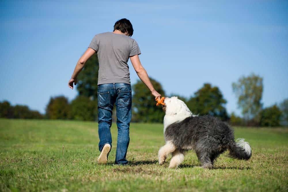 Auch gemeinsames Spiel fördert die Bindung und das Vertrauen. Beim Sozialspiel mit dem Hund begibt sich der Mensch ganz auf die hündische Ebene und interagiert mit seinem Hund körpersprachlich. Was ganz leicht klingt ist oftmals in der Praxis gar nicht so einfach umzusetzen und braucht ein wenig Übung. Zu spielen wie ein Hund fordert den ganzen Körper. Am besten schaut man sich zuvor einmal an wie Hunde untereinander spielen und imitiert diese Bewegungen dann, um ein Spiel mit dem eigenen Hund anzuregen. Den Hund jagen und sich jagen lassen, aber auch Raufspiele sind eine tolle gemeinsame Beschäftigung und stärken das Vertrauen, als auch die Ausschüttung von Oxytocin bei Mensch und Hund. Auch, wenn der Hund anfangs ein wenig verunsichert scheint und sich nicht gleich auf das neue Spiel einlässt, lohnt es sich dran zu bleiben und es immer mal wieder zu probieren. Einige Hunde finden es anfangs einfach ein wenig seltsam ihren Menschen so ungewohnt agieren zu sehen und brauchen ein bisschen, um sich darauf einzulassen.