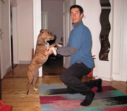 Vor dreieinhalb Jahren hat der Heidelberger Charly Bender die damals 18 Monate alte Stafford Hündin Vicky in Pflege genommen – nicht wissend, dass ihm die Hündin für immer bleiben würde. Da der ehemalige Besitzer nicht mehr in der Lage war, Vicky zurück zu nehmen, und Charly Benders Kinder die Hündin ins Herz geschlossen hatten, beschloss er, Vicky zu behalten. Man verbrachte viel Zeit mit ihr, und im Büro war sie der Liebling der Kollegen. Vicky ist überhaupt zu allen Menschen freundlich und aufgeschlossen. Mit Hündinnen versteht sie sich nicht so gut, was für viele ihrer Artgenossen aber auch nicht ungewöhnlich ist.