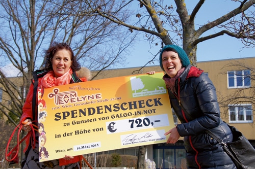 Der Verein Galgo in Not Austria arbeitet seit vielen Jahren mit einigen Tierheimen in Spanien zusammen und hat es sich zur Aufgabe gemacht, Windhunde in ein gutes Zuhause zu vermitteln. Die Hunde werden teilweise mit starken Verstümmelungen und Knochenbrüchen in den Heimen aufgenommen. Zuerst gilt es, vor Ort alles zu heilen und dort finanziell zur Seite zu stehen. Ist der Hund körperlich fit, kann er an ein neues Zuhause vermittelt werden. Neben den körperlichen Wunden beginnt jetzt die Therapie an der Seele. Die sensiblen Tiere sind oft sehr panisch, ängstlich, oder sie verlassen wochenlang ihr Körbchen nicht freiwillig. Sie haben Angst vor Menschen, da sie mit ihnen bisher nur schlechte Erfahrungen gemacht haben. Zusätzlich kennen sie keine Geräusche, lebten abgeschirmt in Zwingern, wo kaum Eindrücke vorhanden waren. Sie müssen sich langsam an Treppen, Aufzüge, Stadtlärm, Kinder und Streicheleinheiten gewöhnen. So sehr ihre Vergangenheit auch grausam war, so schnell sind sie dennoch bereit, sich zu öffnen. Die spanischen Windhunde verblüffen die Tierschützer jeden Tag aufs Neue, wenn sie beginnen, ihre Ängste loszulassen, um fröhlich das neue Leben anzunehmen.