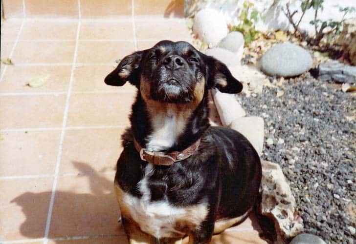 Im Alter von 30 Jahren habe ich dem vorwiegend kalten und nassen Deutschland den Rücken gekehrt und bin auf die Kanaren, nach Fuerteventura, ausgewandert. Das war nunmehr vor 27 Jahren. Meine Brötchen verdiente ich mir als Reiseleiterin für einen süddeutschen Reiseveranstalter. Jeden Tag fuhr ich die verschiedenen Hotels an, um „meine“ Gäste zu besuchen und ihnen bei ihren großen und kleinen Sorgen behilflich zu sein. Oft führte mich mein Weg an allein stehenden Häusern der Einheimischen vorbei, und oft sah ich Hunde an kurzen Ketten angebunden, die Wache schieben sollten. Manchmal in der sengenden Sonne und ohne Wasser. Eines Morgens lag vor solch einem Haus direkt an der Durchgangsstraße ein regungsloser Welpe, überfahren. Ich hielt an und stieg aus. Dem kleinen Kerl war jedoch nicht mehr zu helfen, er war tot, und so marschierte ich auf das Haus zu. Auf einer kleinen Terrasse waren noch 2 Welpen, die zu bellen anfingen, als sie mich sahen, jedoch nicht, um mich zu verjagen, sondern aus Freude! Ich klopfte an die Terrassentür und eine Frau öffnete mir. Ich erzählte von dem kleinen toten Hund auf der Straße. Sie winkte jedoch nur ab und sagte, wenn ich wollte, könnte ich die anderen beiden sofort mitnehmen, sie hätte keine Verwendung für die Hunde. Da ich alleinstehend war und viel unterwegs, schob ich den Gedanken beiseite, die beiden mitzunehmen, und fuhr weiter in den Ferienort, wo ich schon erwartet wurde.