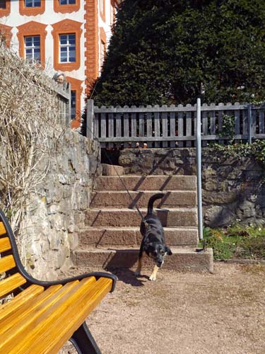 Den ganzen Tag lang dachte ich jedoch an diese beiden Welpen. Ich hatte die Befürchtung, dass auch sie der Durchgangsstraße zum Opfer fallen würden. Aber wie sollte das gehen? Ich und zwei Hunde! Als ich am nächsten Tag auf dem Nachhauseweg wieder an diesem Haus vorbei fuhr, lag tatsächlich der zweite Welpe tot am Rand der Straße! Ohne noch irgendeinen weiteren Gedanken zu verschwenden hielt ich an, stieg aus dem Auto aus, lief zu dieser Terrasse, zum letzten verbliebenen Welpen, klopfte an die Tür und nahm das junge Männlein auf den Arm. Da dieses Mal niemand öffnete, nahm ich ihn einfach mit und hinterließ eine kurze Nachricht.