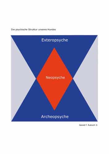 Hier herrscht die Exteropsyche des Hundes. Dies bedeutet, er ist vermutlich „überkonditioniert" und es wird zu viel Folgsamkeit erwartet. Die Exteropsyche überschattet die Archeopsyche. Die Bedürfnisse werden vernachlässigt.