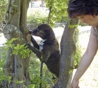 Unser „Klassenprimus" Snoopy, ein 9-jähriges Sennenhund-Chow Chow-Mix-Mädchen, mit Frauchen Sabine zeigte bisher ungeahnte Talente. Früher im Agilitysport aktiv, waren die Tricks und Spiele für beide eine ganz neue Herausforderung. Egal ob einfache Pfotentricks oder schwierigere Aufgaben wie „Schämen" und „Nase Putzen", mit Feuereifer arbeitete Snoopy konzentriert mit. Problemlösungsspiele und Denksportaufgaben löste sie mit Bravour und leidenschaftlicher Hingabe.