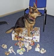 „Niemals hätte ich gedacht, dass mein alter Junge mit so viel Begeisterung und Enthusiasmus an die Tricks und Spiele herangeht, ich hab’ immer gedacht, das wäre ihm zu doof", lacht Frauchen Helga und ist froh, dass Jarko nachts schläft wie ein Stein und keine Kraft mehr zum Bellen hat. Am Ende der Woche konnte Jarko perfekt „Grüizi" (rechte Pfote) und „Tschüss" (linke Pfote) winken, er spielte „müder Hund" und fraß nun auch das bisher eher mäkelig beäugte Diät-Trockenfutter für den Seniorenhund mit wachsender Begeisterung.