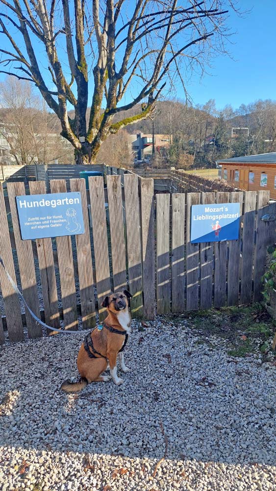 Eigentlich wollten wir nach dem Tod unserer beiden Hunde Piccolina und Timo, die uns viele Jahre auf unseren Campingreisen begleitet haben, gar keinen Hund mehr in unser Leben lassen. Aber – es ging ganz einfach nicht. Nach reiflicher Überlegung, die dann doch schnell abgeschlossen war, rief ich beim Gut Aiderbichl an und bald darauf sprang Shelby in meine Arme! Shelby stammt aus dem Kastrations- und Streuner-Projekt von Gut Aiderbichl in Rumänien. Da wir mit Gut Aiderbichl schon lange verbunden sind und es immer sehr genießen, Zeit dort zu verbringen, wollten wir natürlich auch gerne in der Nähe übernachten. Neben dem Campingplatz Fenningerspitz, der in der Nähe des Gutes in Henndorf am Wallersee liegt, bietet auch der Reisemobilstellplatz Salzburg alles, was man als Camper so braucht. Der von einem Hundebesitzer liebevoll betriebene Stellplatz liegt am Stadtrand von Salzburg. Direkt neben der Einfahrt ist eine Bus-Station und so kommt man bequem in die Altstadt, um die Salzburger Sehenswürdigkeiten zu besichtigen oder auf den Kapuzinerberg zu wandern. Zu Fuß erreicht man in gut 30 Minuten die Wallfahrtskirche Maria Plain, von wo man einen wunderbaren Ausblick auf die Festung Hohensalzburg hat. In unmittelbarer Umgebung des Stellplatzes befinden sich auch zwei Restaurants und Einkaufsmöglichkeiten, die zu Fuß erreichbar sind. Wie auch auf den dazugehörenden Stellplätzen in Graz und Mureck, gibt es auch auf dem Stellplatz Salzburg eine Hundezone. Für uns ist dieser Platz ganz einfach perfekt!