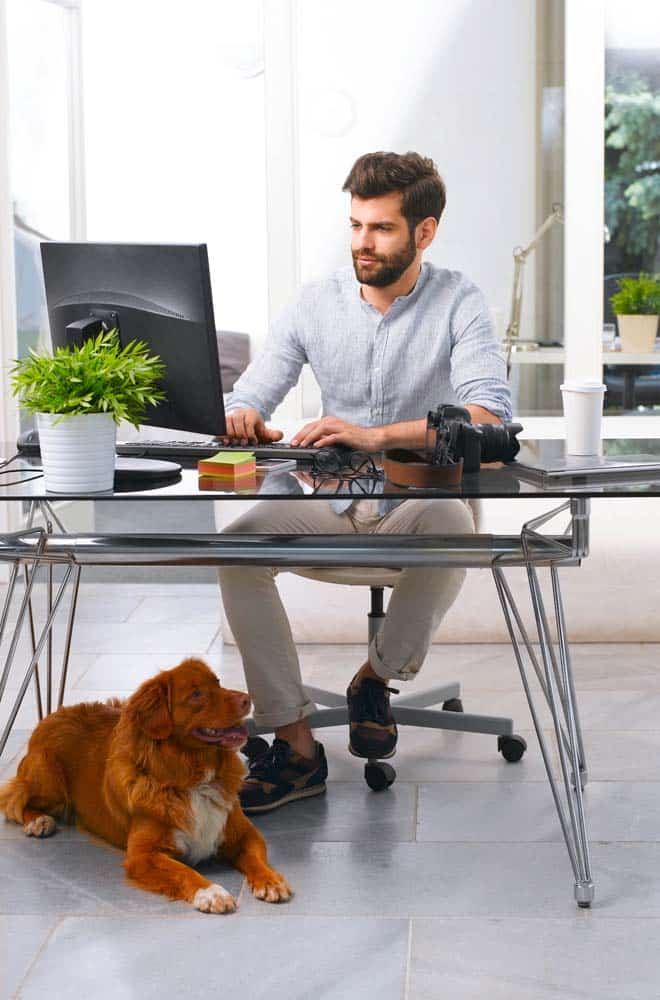 … wäre für mich das Schönste, bei meiner Bezugsperson sein zu können. Wenn mir zu Ausgeglichenheit verholfen wird, dann kann ich mich auch den Tag über im Büro entsprechend ruhig verhalten und diesen gemeinsam mit meinem Menschen und den Arbeitskollegen genießen. Mein Mensch bekommt dann auch sofort mit, wenn ich mich mal nicht wohl fühle, und kann sofort handeln. Überstunden müssen nicht unbedingt sein, sind aber nicht so schlimm für mich, weil ich ja nicht allein zu Hause auf meinen Menschen warten muss.
