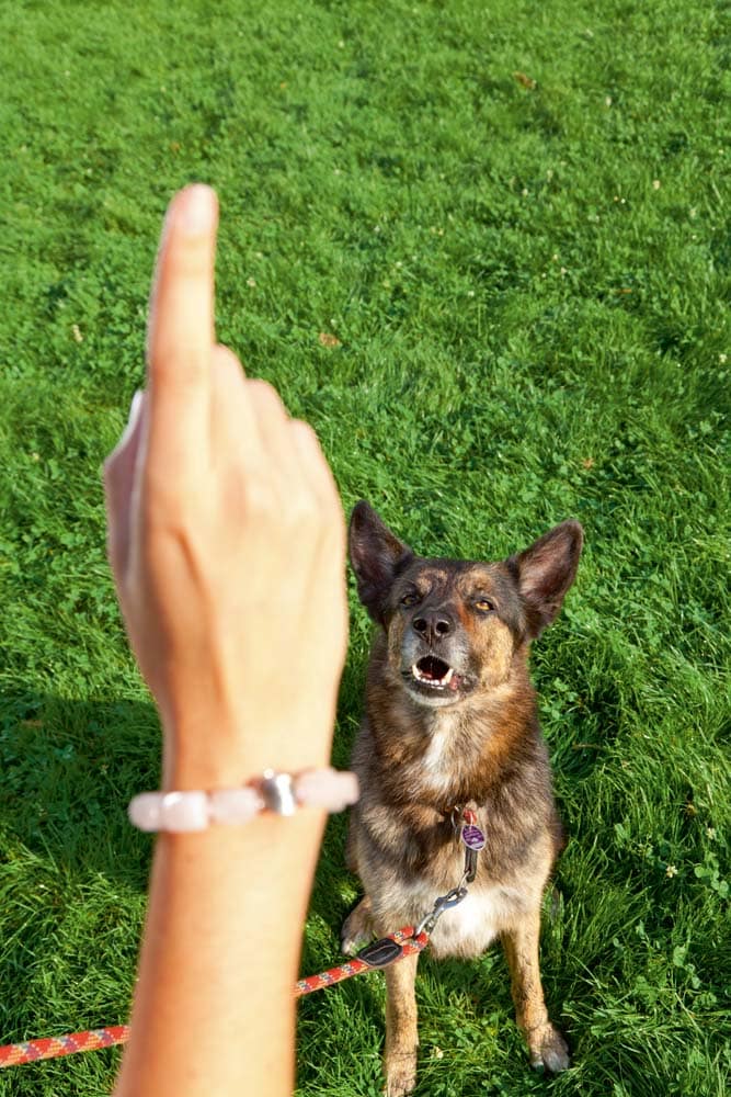 Beginnen wir mit einem ganz einfachen Beispiel aus dem Alltag: Wir lehren den Hund, sich auf ein verbales und ein optisches Signal hinzusetzen. Meistens heben wir den Zeigefinger und sagen dazu laut „Sitz!“. Nun kommt es häufig vor, dass der Hund die Geste vor das ausgesprochene Wort stellt, da die Körpersprache für ihn wichtiger als das Hörzeichen ist. Sprich: Er reagiert stärker auf den Fingerzeig und nicht auf das Hörzeichen. Das aber bleibt lange Zeit unbemerkt, weil wir in dem Glauben sind, in der Regel immer beides – und mit derselben Wichtigkeit – anzuwenden.