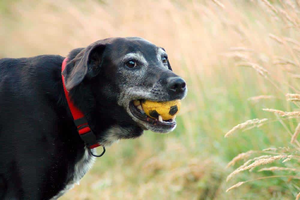 Bevor es allerdings soweit ist, kann der fortgeschrittene Alterungsprozess des Hundes an relativ typischen Anzeichen erkannt werden: Die körperliche Leistungsfähigkeit des Vierbeiners nimmt ab, sie ermüden schneller. »Alte Hunde brauchen meist doppelt so lange für gewohnte Strecken und hecheln vermehrt«, sagt Kuen. Die Ruhephasen verlängern sich dementsprechend. »Teilweise schlafen geriatrische Hunde gar bis zu 22 Stunden am Tag.« Auch ihr Immunsystem ist nicht mehr so aktiv wie früher, so dass ältere Tiere anfälliger für Krankheiten werden. Ebenfalls nimmt die Sinneswahrnehmung bei Hundesenioren langsam ab. Ihr Geruchssinn wird schlechter, wodurch die Vierbeiner auch den Geschmack des Futters immer weniger wahrnehmen. Zudem nimmt der Seh- und Gehörsinn ab und somit auch ihre Reaktionsfähigkeit. Während der Vierbeiner früher bereits Sekunden vor dem Geräusch des sich im Schloss drehenden Schlüssels aufsprang und seinen Halter freudig an der Tür begrüßte, macht er sich im Seniorenalter meist erst beim Anblick oder Rufen seines Halters auf den Weg zur Türe. Auf Spaziergängen hört der Hundesenior immer schlechter – nicht, weil er die Signale ignoriert. Vielmehr hört er sie einfach nicht mehr und sichert sich nun vermehrt durch Blickkontakt ab. Doch auch die Sehkraft nimmt im Alter zunehmend ab. Genauso wie auch das Gebiss schlechter wird.