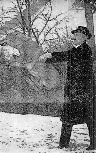 Diese Umwandlung des Wolfes zum Haustier muss als eine ganz große Leistung des Menschen betrachtet werden, denn der Wolf ist in Gefangenschaft kaum „abrichtbar". So ist es mir nicht gelungen, festzustellen, ob und wo der Wolf je in einem Zirkus vorgeführt wurde, wenn man von wenig aussagekräftigen Informationen über Derartiges aus den USA absieht. Während also der Wolf besonders schwierig zu zähmen oder gar für Vorführungen auszubilden sein dürfte, sind Zirkusvorführungen von Raubkatzen wie Tiger und Löwen etwas ganz Normales.