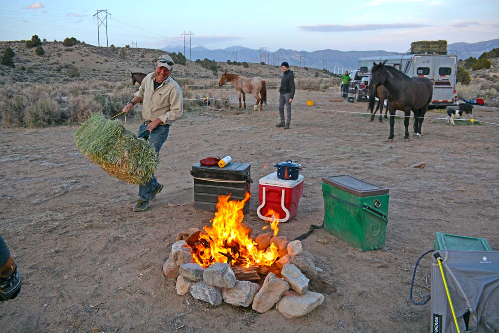 Am späten Nachmittag erreichen wir Cave Lake State Park, wo Wolfgang bereits auf uns wartet. Er begleitet uns als Fotograf durch Nevada und hat unseren Truck vom ersten Camp über den Umweg der Straßen hierhergefahren. Auf der Ladefläche stapeln sich hinter einem riesigen Wasserfass Heuballen und einige Säcke Heu-Cubes. Denn ohne Wasser wächst in Nevada auch kaum Gras.