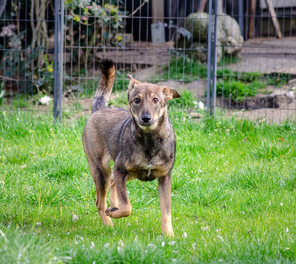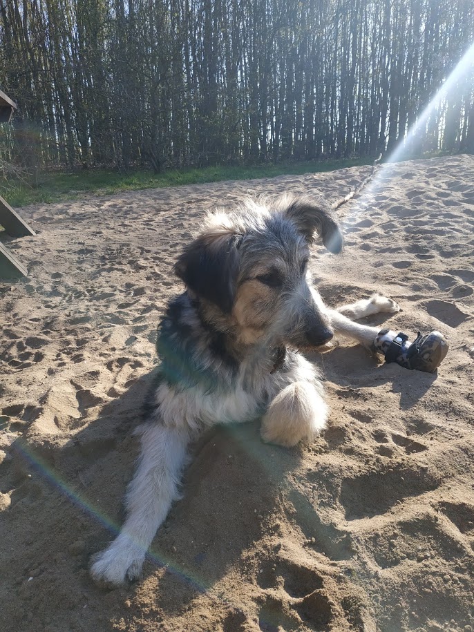 Auch Sabra kam als junger Handicap Hund zum Verein. Im August 2018 wurde sie auf der Straße gefunden: Ihr fehlte die halbe Schnauze und sie war abgemagert. “Wir erfuhren, dass auch diese Verletzung von Menschenhand kommt”, sagt Iris, die sich damals dazu entschied, Sabra zu sich zu holen. “Ein junger Mensch war mit Absicht mit einem Motorrad in eine Gruppe Welpen gefahren, darunter war auch Sabra. Sie war die einzige Hündin, die überlebt hatte”. Dabei musste Hündin Sabra leider noch lange warten, bis sie endlich nach Deutschland kommen konnte. Sie wurde krank – so krank, dass nicht klar war, ob sie es überleben würde, geschweige denn, ob sie reisen durfte. Aber im April 2019 war es dann endlich soweit und Sabra kam zu Iris in die Pflegestelle. Entgegen aller Erwartungen war Sabra ein quicklebendiger, fröhlicher Hund. “Wenn wir spazieren waren, waren im ersten Moment viele Leute erstmal von ihrem Anblick abgeschreckt. Aber wenn man sie mal eine kurze Zeit erlebt hat, verliebt man sich einfach in diesen tollen Charakter”, erinnert sich Iris.